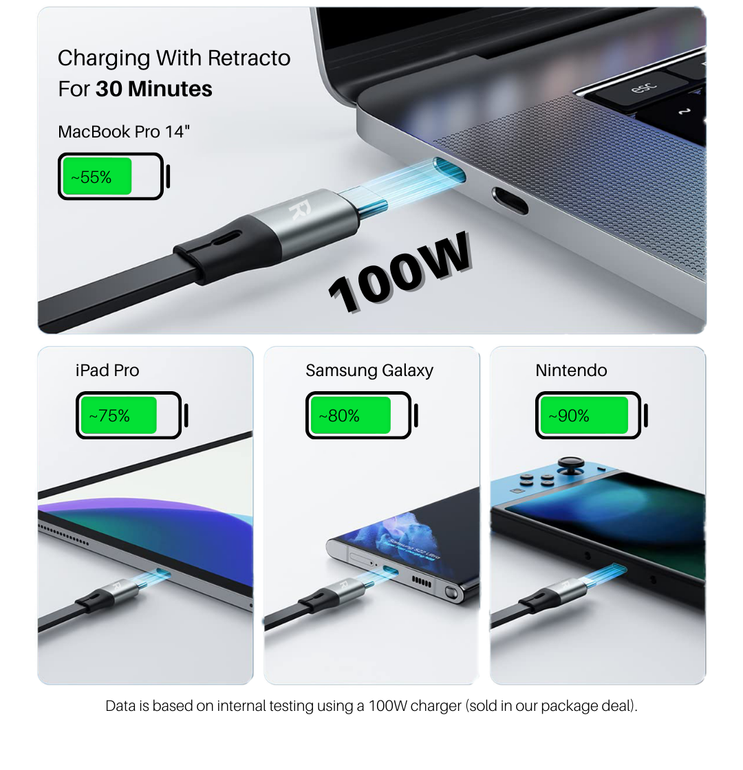 Just pack two of these with the Retracto 100W USB-C charger, and that's all you'll need to charge most of your electronics! If this works for me and the many electronics (phones, tablets, laptops, cameras, battery packs, etc) I travel with, it'll work for everyone! - Brandon L., Verified Purchaser