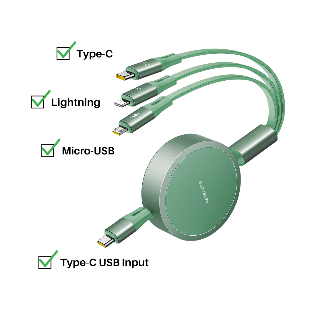 Retracto™ Ultra: 3-in-1 Retractable USB-C Charging Cable
